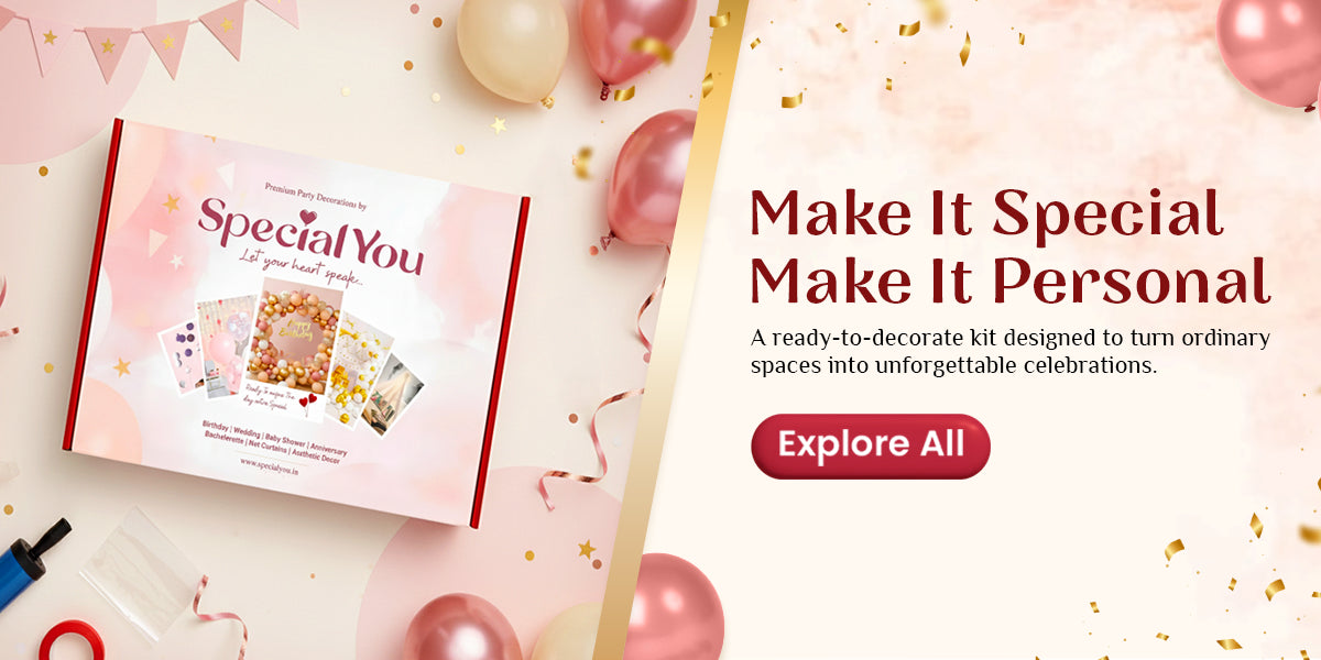 SpecialYou offers professional balloon decoration and themed event setups for birthdays, anniversaries, baby showers, romantic surprises, weddings, and festive celebrations. Each decoration is customized to match your theme, venue, and occasion.