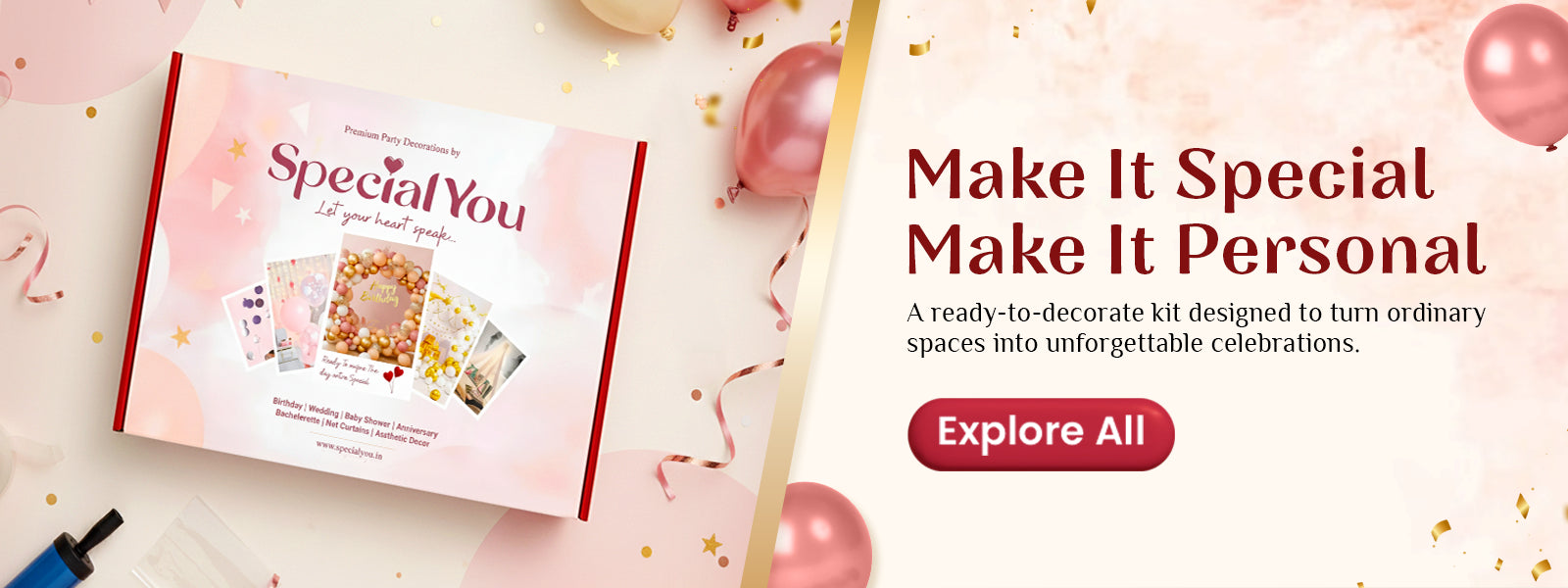 Yes. SpecialYou also offers DIY decoration kits and party supplies for customers who want to decorate at home. These kits are curated for easy setup and enjoyable celebrations.