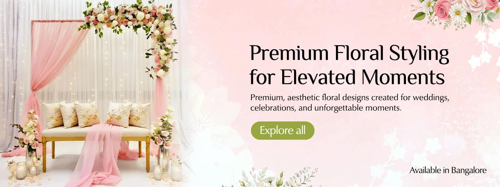 We provide decoration services across Delhi, Gurgaon, Noida, Ghaziabad, Faridabad, and Greater Noida. For nearby NCR locations, you can contact us to confirm availability.